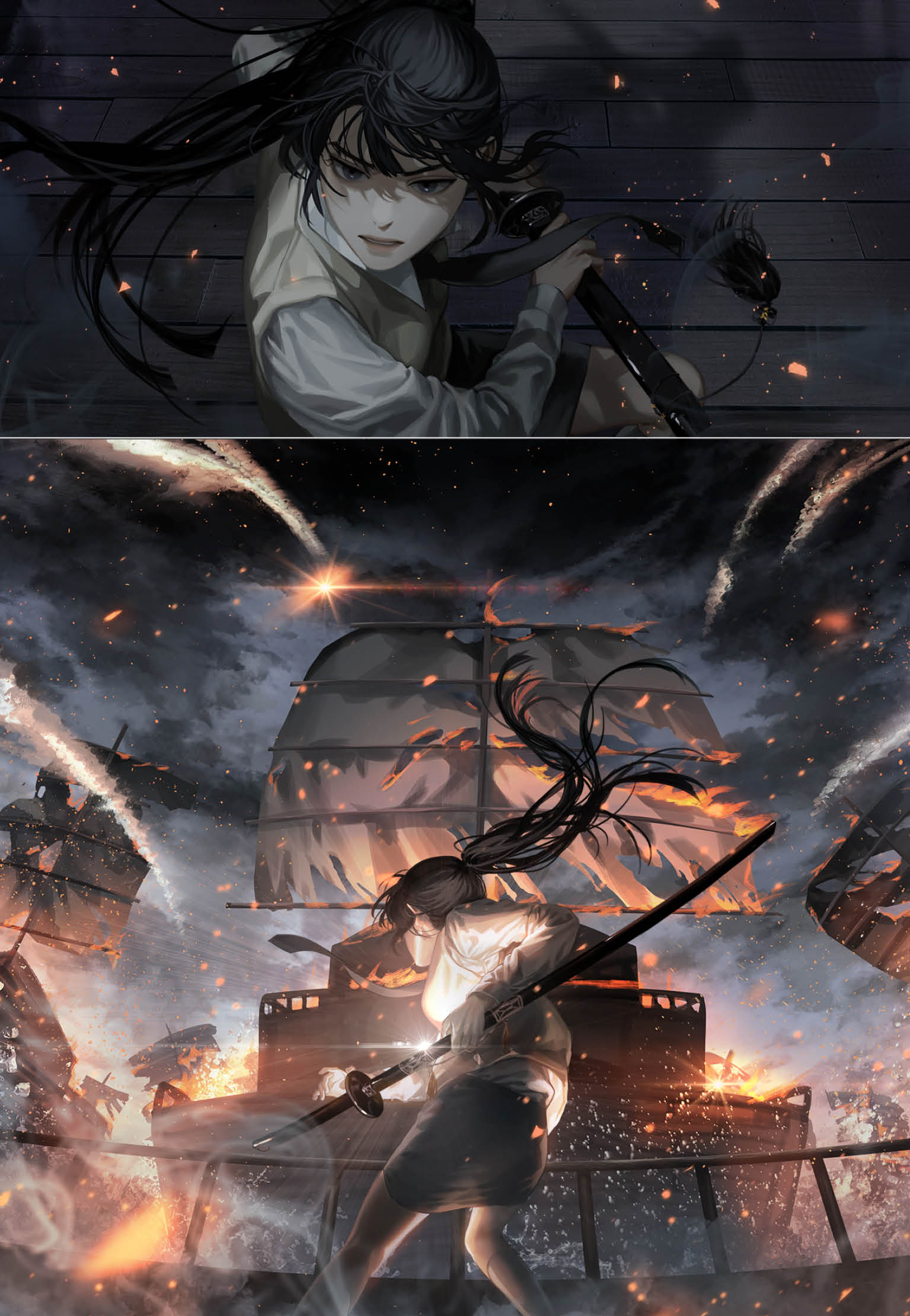 The stage was the sea. But… this time it wasn't a cruise ship. There was the smell of artillery. I could feel rough wood of the panokseon¹ deck.